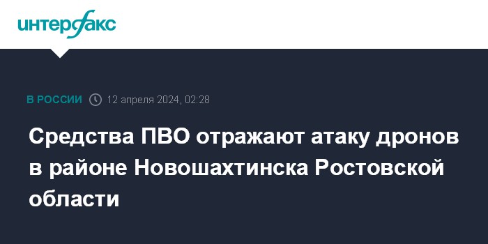 Москва. 12 апреля. INTERFAX.RU - Средства противовоздушной обороны отражают атаку беспилотников в районе Новошахтинска в Ростовской области, сообщил в пятницу глава региона Василий Голубев.