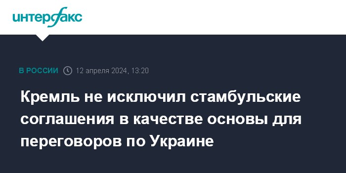 Москва. 12 апреля. INTERFAX.RU - В Кремле подтвердили готовность к диалогу с украинской стороной и не исключили выработанные два года назад "стамбульские соглашения" в качестве основы для мирного урегулирования.