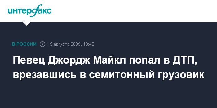 Певец Джордж Майкл попал в ДТП, врезавшись в семитонный грузовик