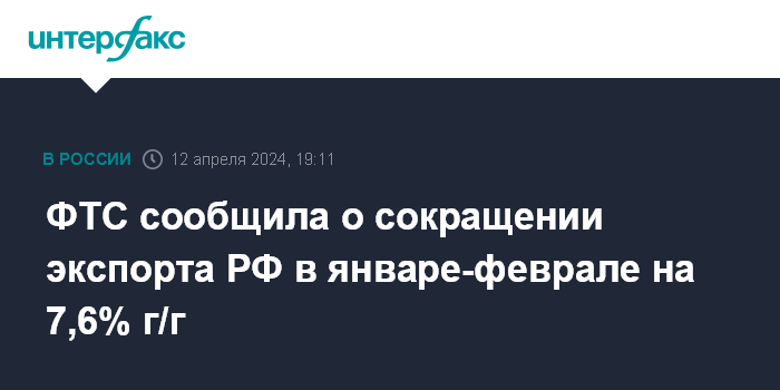 ФТС сообщила о сокращении экспорта РФ в январе-феврале на 7,6% г/г
