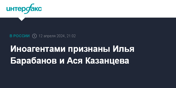 Иноагентами признаны Илья Барабанов и Ася Казанцева