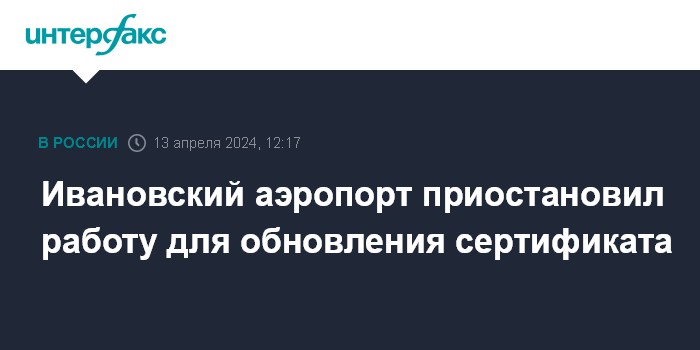 "Аэропорт "Иваново" приостановил свою работу в связи с обновлением сертификата на аэродром. Мы прилагаем все усилия для того, чтобы процесс получения нового сертификата был выполнен в кратчайшие сроки", - говорится в сообщении предприятия.