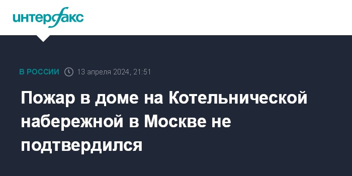 Пожар в доме на Котельнической набережной в Москве не подтвердился