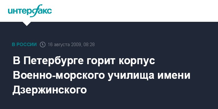 Санкт-Петербург. 16 августа. ИНТЕРФАКС - Пожар возник в воскресенье утром в одном из корпусов Военно-морского училища имени Дзержинского в Петербурге, сообщили "Интерфаксу" в главном управлении МЧС РФ по Северной столице.