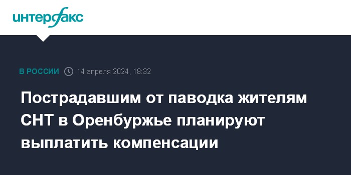 Москва. 14 апреля. INTERFAX.RU - Власти Оренбургской области будут включать пострадавшие от паводка дома в дачных массивах в перечень для выплат компенсаций, сообщается в телеграм-канале правительства региона в воскресенье.