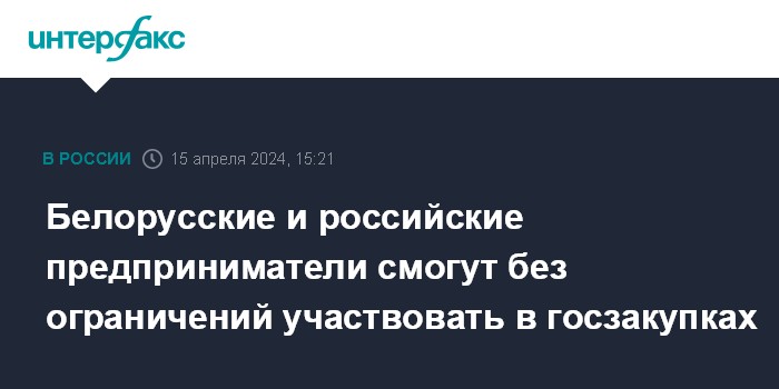 Белорусские и российские предприниматели смогут без ограничений участвовать в госзакупках