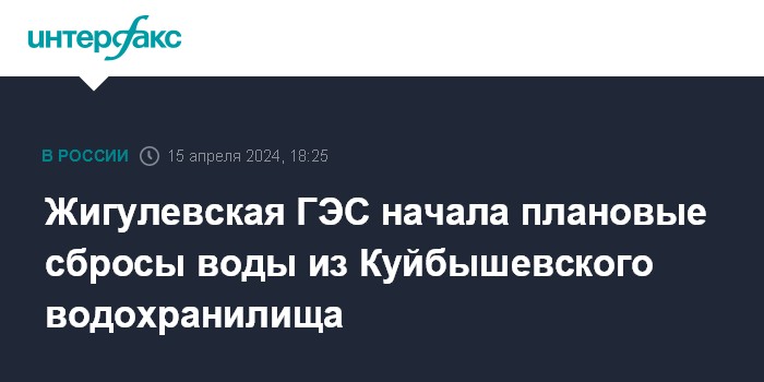 Москва. 15 апреля. INTERFAX.RU - Жигулевская ГЭС (Самарская область, филиал ПАО "РусГидро") начала плановые сбросы воды из Куйбышевского водохранилища Волги. Об этом сообщается на странице гидроэлектростанции "ВКонтакте" в понедельник.