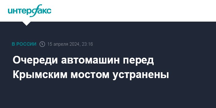 Москва. 15 апреля. INTERFAX.RU - Очереди к досмотровым пунктам при въезде на Крымский мост полностью ликвидированы, сообщает телеграм-канал, освещающий ситуацию на автомобильных подходах к мосту.
