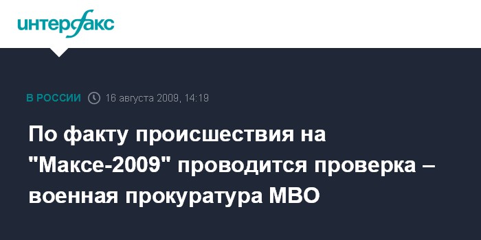 По факту происшествия на "Максе-2009" проводится проверка – военная прокуратура МВО