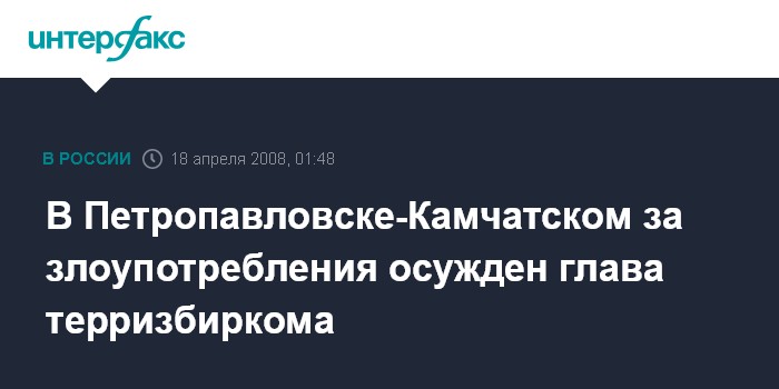 Петропавловск-Камчатский. 18 апреля. ИНТЕРФАКС-ДАЛЬНИЙ ВОСТОК - Вынесен обвинительный приговор в отношении председателя одной из территориальных избирательных комиссий Петропавловска-Камчатского Виталия Маринича, который назначил себе вторую заработную плату и незаконно получил из бюджета более 140 тыс. рублей.
