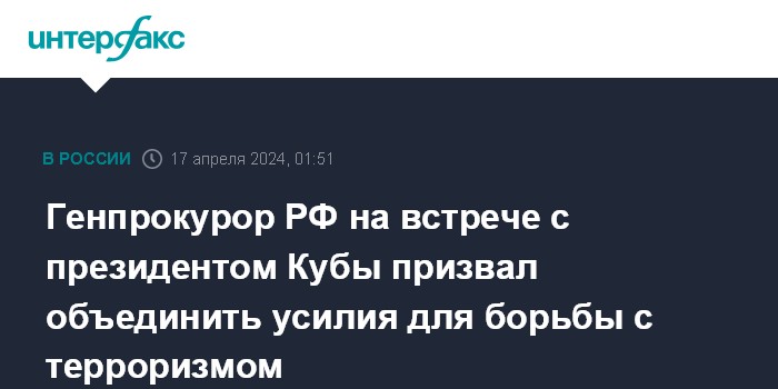 Генпрокурор РФ на встрече с президентом Кубы призвал объединить усилия для борьбы с терроризмом