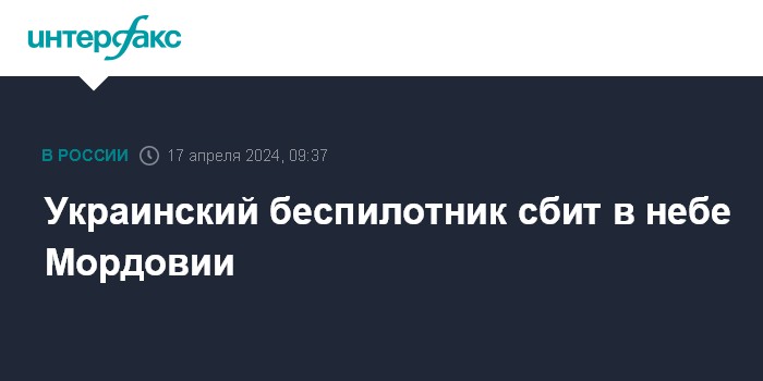 "Дежурными средствами ПВО украинский беспилотный летательный аппарат уничтожен над территорией республики Мордовия", - сказано в сообщении.