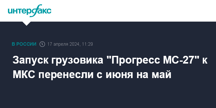 Запуск грузовика "Прогресс МС-27" к МКС перенесли с июня на май