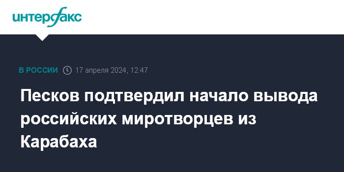Москва. 17 апреля. INTERFAX.RU - В Кремле подтвердили начало вывода российских миротворческих сил из Карабаха.