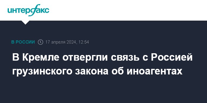 Москва. 17 апреля. INTERFAX.RU - В Кремле заявили, что закон об иноагентах, обсуждаемый в Грузии, нельзя считать российским, а массовые протесты в этой стране инспирированы извне.