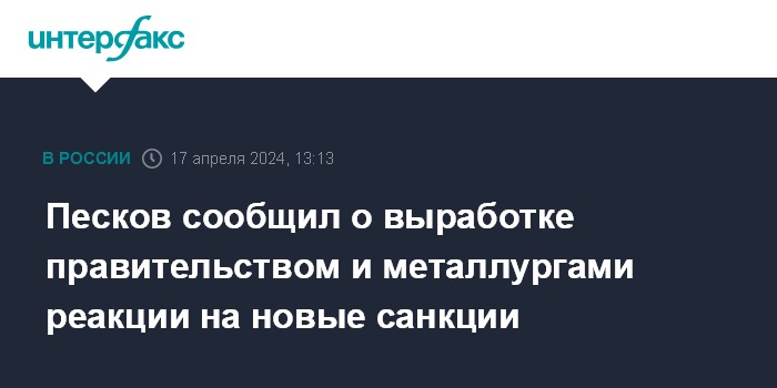 Песков сообщил о выработке правительством и металлургами реакции на новые санкции
