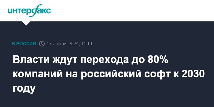 Власти ждут перехода до 80% компаний на российский софт к 2030 году