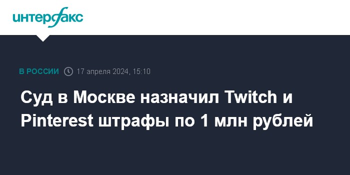 Суд в Москве назначил Twitch и Pinterest штрафы по 1 млн рублей
