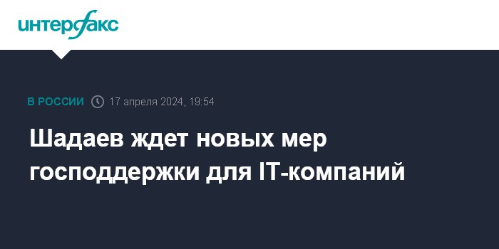Шадаев ждет новых мер господдержки для IT-компаний