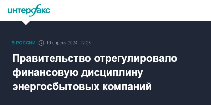 Москва. 18 апреля. INTERFAX.RU - Правительство опубликовало постановление о финансовой дисциплине энергосбытовых компаний, критериями которой стали расчеты с сетевыми компаниями за услуги по передаче электроэнергии.