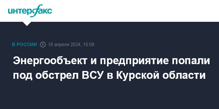 Энергообъект и предприятие попали под обстрел ВСУ в Курской области