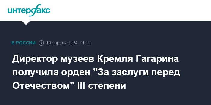 Директор музеев Кремля Гагарина получила орден "За заслуги перед Отечеством" III степени