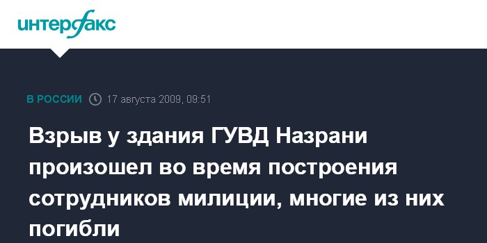 Москва. 17 августа. INTERFAX.RU - В результате взрыва здания ГОВД Назрани есть большое количество пострадавших и погибших, сообщил агентству "Интерфакс-Юг" источник в МВД Ингушетии.