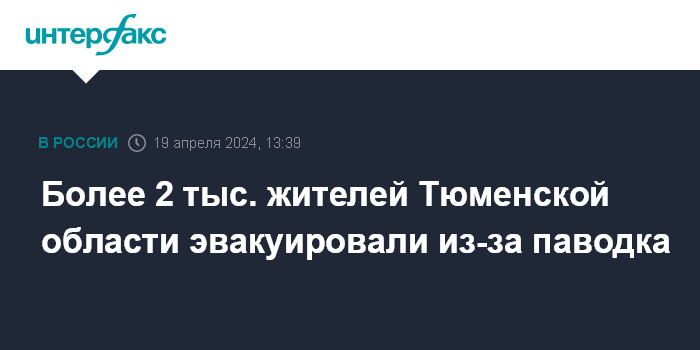 Москва. 19 апреля. INTERFAX.RU - Продолжает расти число эвакуированных людей с подтопляемых территорий в Тюменской области, сообщил заместитель председателя областной комиссии по предупреждению и ликвидации ЧС и обеспечению пожарной безопасности Владимир Чейметов.