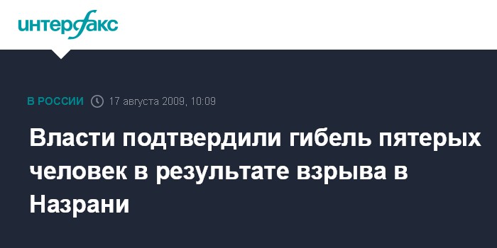 Москва. 17 августа. INTERFAX.RU - По предварительным данным, пять человек погибли в результате взрыва в здании городского отделения милиции в Назрани, сообщили "Интерфаксу" в понедельник в пресс-службе представительства Ингушетии в Москве.