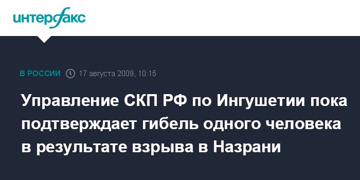 Управление СКП РФ по Ингушетии пока подтверждает гибель одного человека в результате взрыва в Назрани