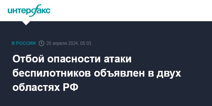 Москва. 20 апреля. INTERFAX.RU - Губернаторы Воронежской и Курской областей объявили об отмене опасности атаки беспилотников.