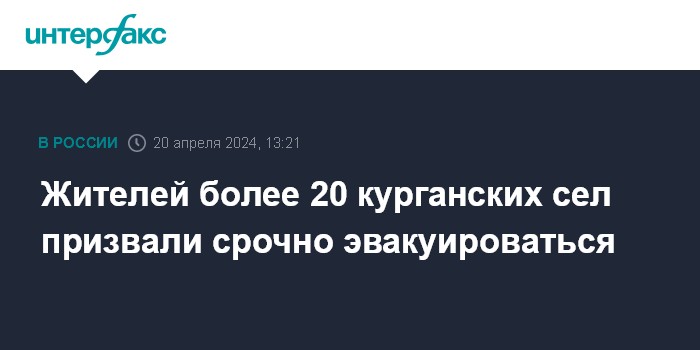 Москва. 20 апреля. INTERFAX.RU - Жителям нескольких населенных пунктов Белозерского округа необходимо срочно эвакуироваться, сообщает в субботу правительство Курганской области.
