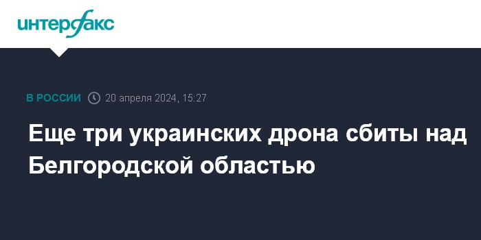 Москва. 20 апреля. INTERFAX.RU - В Минобороны РФ сообщили, что средства ПВО сбили три украинских беспилотника над Белгородской областью.