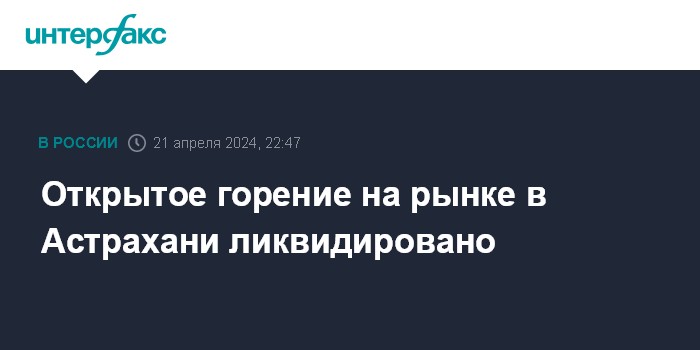 Москва. 21 апреля. INTERFAX.RU - Спасатели потушили открытое пламя на рынке в Астрахани, сообщает пресс-служба МЧС России.