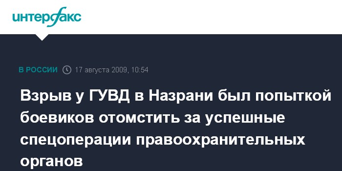 Как сказал пресс-секретарь, президент Ингушетии считает взрыв в Назрани попыткой боевиков отомстить за успешные спецоперации правоохранительных органов.