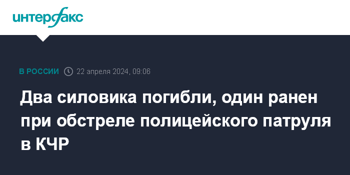 Москва. 22 апреля. INTERFAX.RU - Наряд полиции обстреляли в городе Карачаевске Карачаево-Черкесии, два сотрудника погибли и один госпитализирован с тяжелыми ранениями, сообщает следственное управление СКР по КЧР в понедельник.