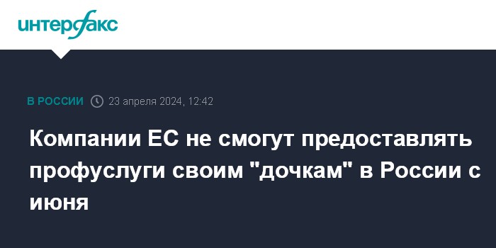 Компании ЕС не смогут предоставлять профуслуги своим "дочкам" в России с июня