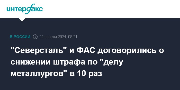 Как сказал "Интерфаксу" источник, знакомый с условиями подписанного сторонами мирового соглашения, при корректировке размера штрафа в рамках договора между компанией и ведомством для расчета была взята за основу более низкая планка процента выручки от продажи г/к проката в 2021 году.