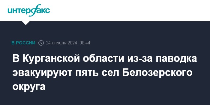 Москва. 24 апреля. INTERFAX.RU - В Курганской области объявлена превентивная эвакуация из пяти сел Белозерского округа из-за повышения уровня воды в реке Тобол, сообщает телеграм-канал администрации округа.