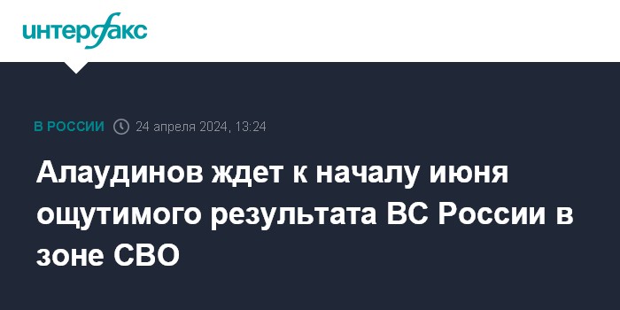 Москва. 24 апреля. INTERFAX.RU - Российские войска к концу мая - началу июня добьются ощутимого результата в зоне специальной военной операции на Украине, заявил Первому каналу заместитель начальника главного военно-политического управления Вооруженных сил России Апты Алаудинов.