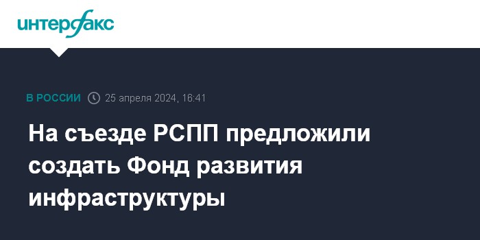 Москва. 25 апреля. INTERFAX.RU - На съезде Российского союза промышленников и предпринимателей член правления РСПП Игорь Вдовин предложил создать Фонд развития инфраструктуры.