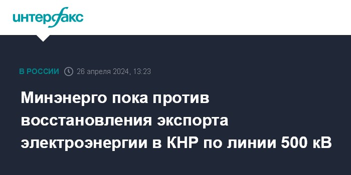 Минэнерго пока против восстановления экспорта электроэнергии в КНР по линии 500 кВ