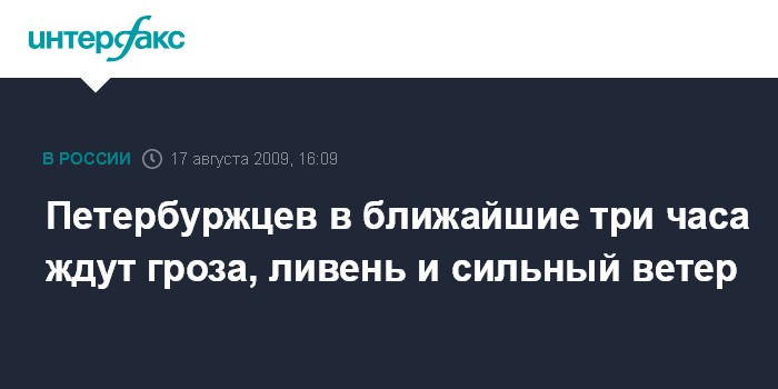 Москва. 17 августа. INTERFAX.RU - Главное управление МЧС по Петербургу предупреждает об ухудшении погоды в городе в ближайшие часы. "В ближайшие 1-3 часа в Петербурге ожидаются грозы с ливневыми дождями при усилении ветра до 15-18 м/с", - говорится в сообщении управления. ГУ МЧС России напоминает жителям и гостям города о необходимости соблюдения мер безопасности в сложных погодных условиях.