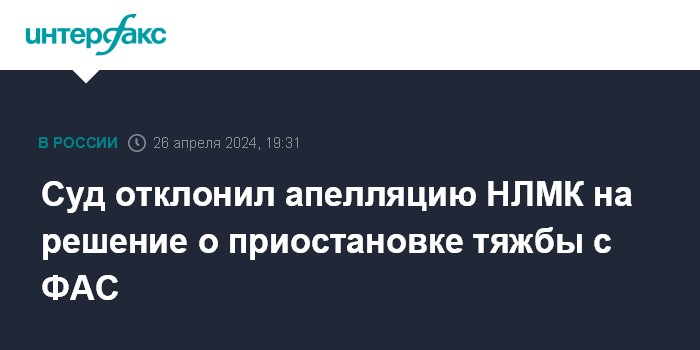 Суд отклонил апелляцию НЛМК на решение о приостановке тяжбы c ФАС