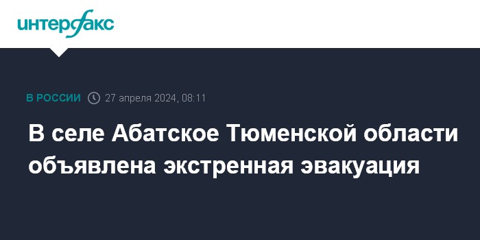 В селе Абатское Тюменской области объявлена экстренная эвакуация