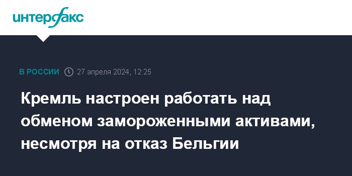 Кремль настроен работать над обменом замороженными активами, несмотря на отказ Бельгии