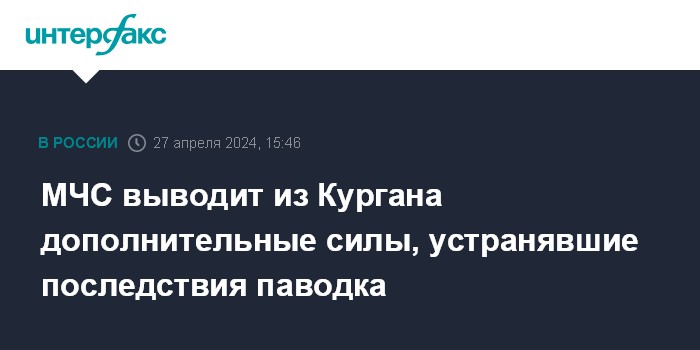 МЧС выводит из Кургана дополнительные силы, устранявшие последствия паводка