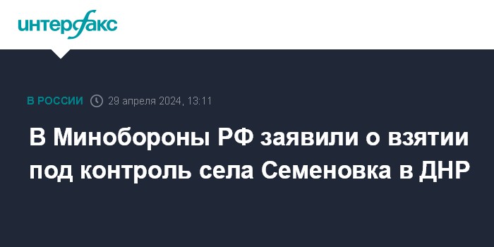 В Минобороны РФ заявили о взятии под контроль села Семеновка в ДНР