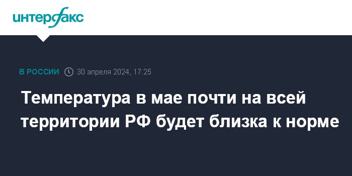 Москва. 30 апреля. INTERFAX.RU - Почти на всей территории страны в мае температура будет около нормы, но в целом месяц будет с неустойчивой погодой, сообщил "Интерфаксу" научный руководитель Гидрометцентра России Роман Вильфанд.