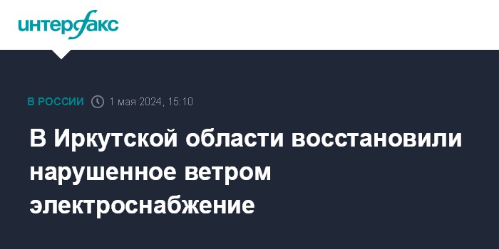Москва. 1 мая. INTERFAX.RU - Специалисты вернули электричество в дома жителей Приангарья, оставшихся без света из-за разгула стихии, сообщает в среду пресс-служба главного управления МЧС по Иркутской области.